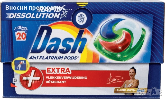 Dash Platinum 4in1 Pods с допълнителен препарат за премахване на петна. 20 бр.