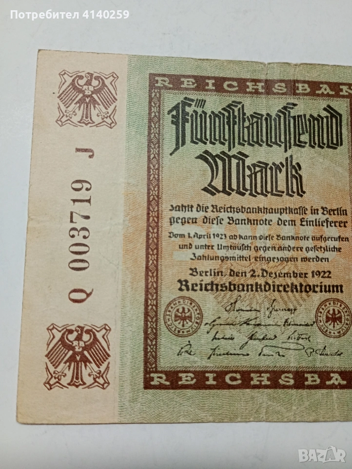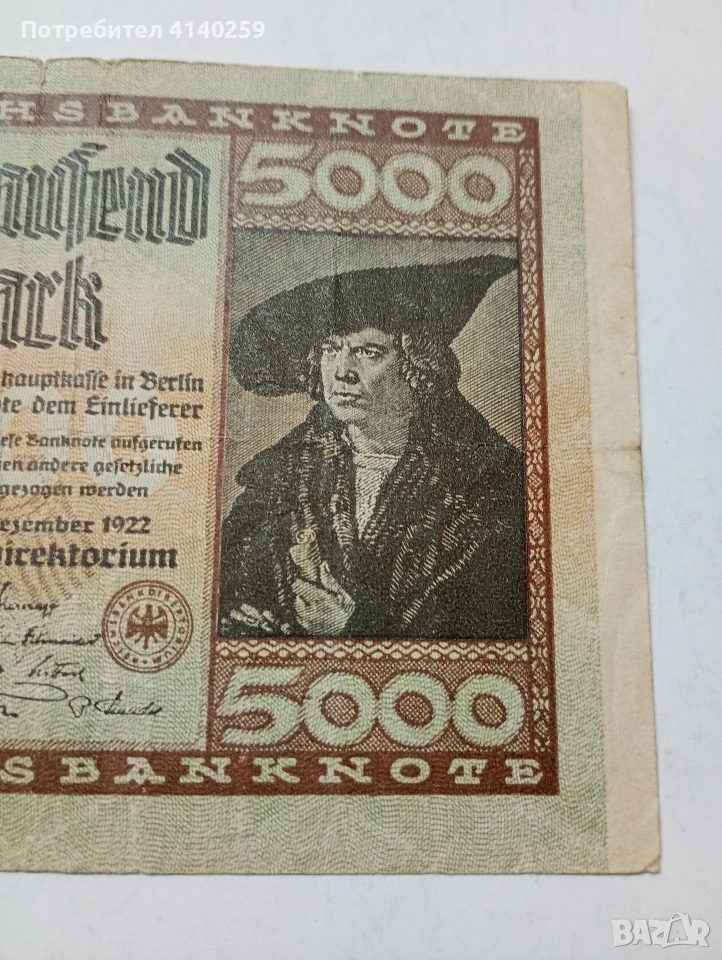 ГЕРМАНИЯ БАНКНОТА 5000 МАРКИ 1922 Г → Обява 53349647