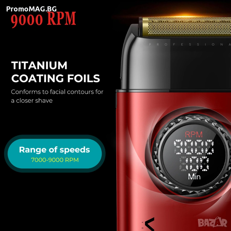 Самобръсначка VGR V-377: Гладко и комфортно бръснене. Двойни титаниеви пластини, 1400 mAh батерия за до 140 минути работа. Висока мощност – 9000 об/мин.