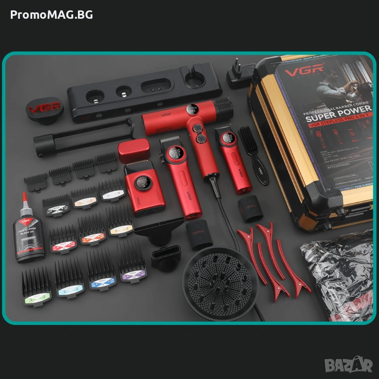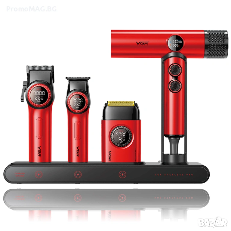 Професионален комплект VGR Stepless 4 в 1 – с куфар и станция за зареждане