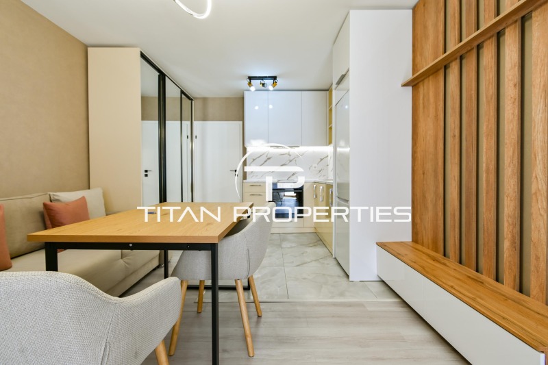 Титан Пропъртис - офис Младост с радост предлага на Вашето внимание едностаен апартамент под наем в ж.к. Малинова долина, София. Жилището от 42 кв.м. се намира на 1-ви етаж в нова 6-етажна нова сграда. Изложението е южно. Разпределението включва еднопространствено помещение, баня с тоалетна и тераса. Жилището е обзаведено с всички необходими мебели и електроуреди, което позволява незабавно нанасяне. Отоплението на ток, посредством климатик.