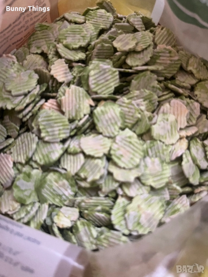Люцерната е чиста, без примеси и не е подходяща за бебета зайчета. Всички се предлагат в разфасовки по 1 кг. Цената на люцерната и микса е 20 евро за килограм, а на сеното е 15 евро за килограм. Люспите от грах са по 15 евро за килограм.