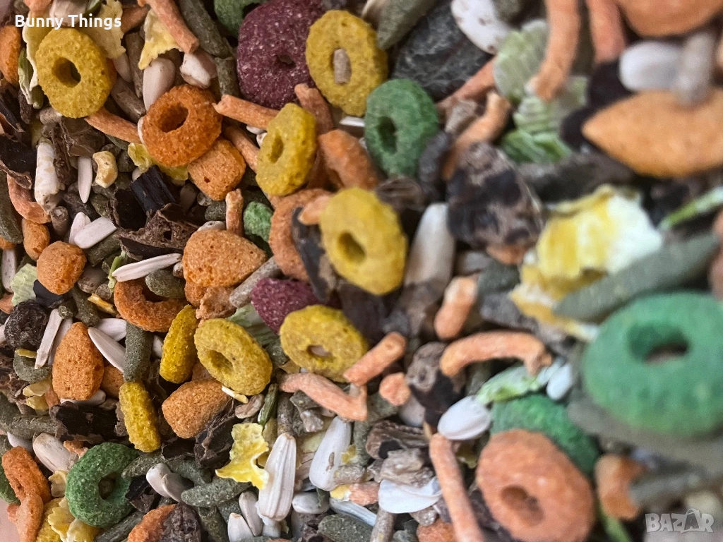 Миксовете се предлагат в разфасовки от един килограм, имам за различни възрасти. Имам и други миксове, пишете на лично за повече информация. Има за бебета и за възрастни зайци. Има и само пелети за малки зайчета. Сеното е с добавени коприва, глухарче, мента и сушена ябълка. Имам и чисто сено- 1 кг. 12 евро.