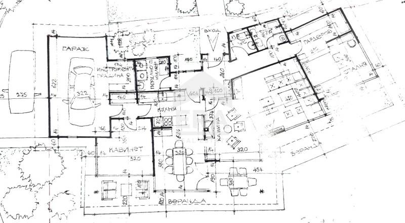 В плана е качен проект на къща, която може да бъде построена върху този парцел.