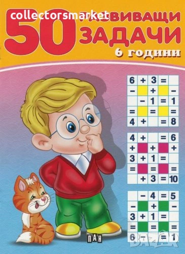 Занимателна книжка с 50 забавни упражнения и игри за усвояване на начални умения по писане, броене и смятане, за трениране на фината моторика, логически задачи за развиване на наблюдателността и аналитичното мислене.