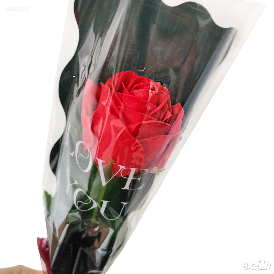 Опакована в прозрачен целофан с декоративна панделка, розата е напълно готова за поднасяне. Подходяща е като подарък за Свети Валентин и 8 март, както и за рожден ден, годишнина или изненада за любим човек. Дългата форма и наситеният червен цвят я превръщат в класически символ на романтика.