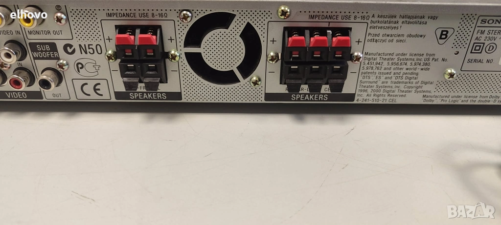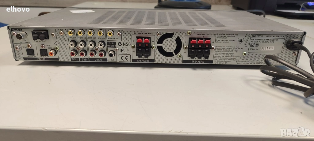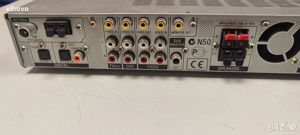 Изходна мощност: 5 x 30W или 35W RMS при 8 ома в съраунд режим.Аудио декодери: Поддържа Dolby Digital, DTS и Dolby Pro Logic II.Цифрова обработка: 32-битов DSP (Digital Sound Reproduction) и DCS (Digital Cinema Sound) с различни режими за кино и музика.Радио тунер: Вграден AM/FM тунер с RDS поддръжка. Цифрови входове: 2 оптични (Toslink) и 1 коаксиален вход.Аналогови входове: 3 видео входа и съответните аудио входове (RCA), включително поддръжка за касетен дек и две линейни устройства.Изходи: Изход за субуфер (pre-out), мониторен изход (FBAS) и 1 видео изход.