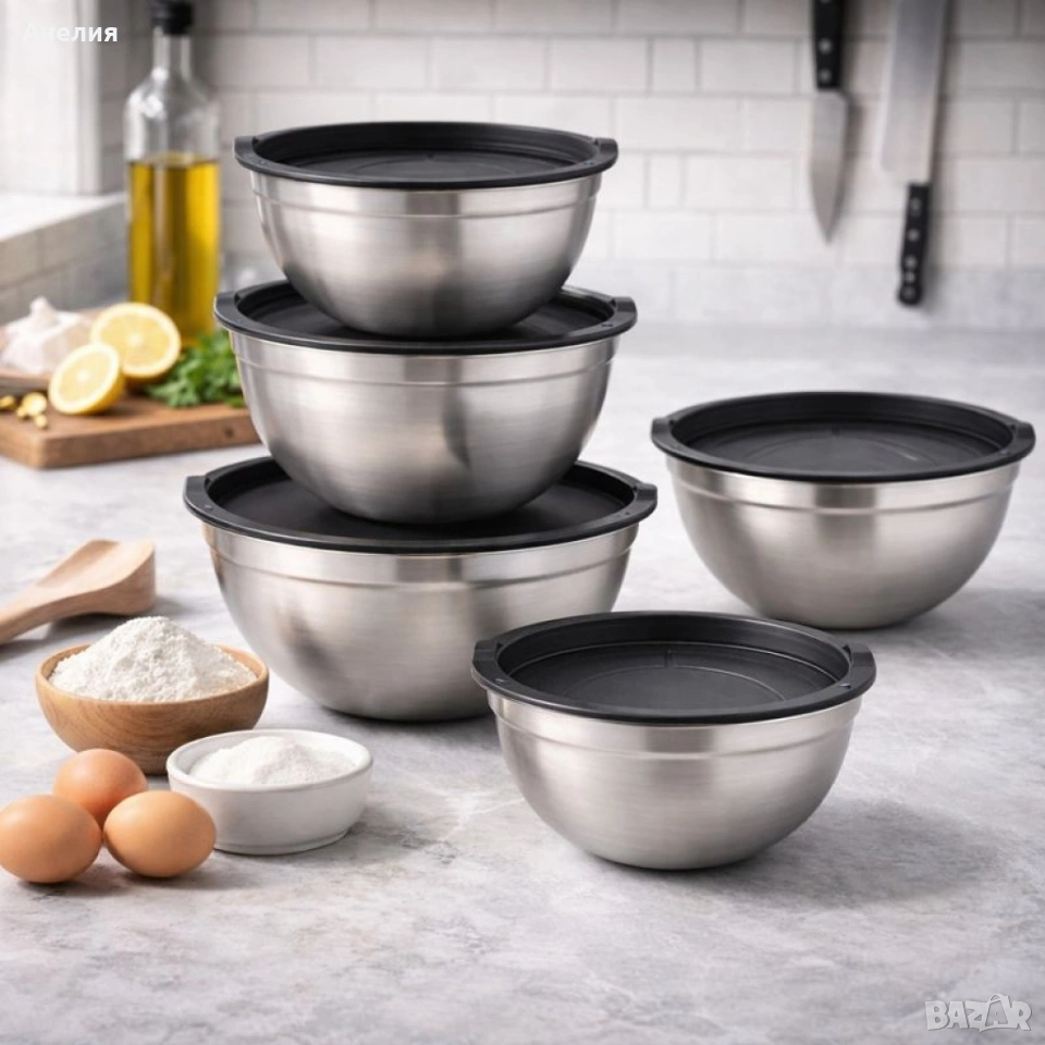 Комплект купи от неръждаема стомана 18/10 с капаци – 10 части, матово покритие, снимка 1 - Кутии за храна - 53350360 Комплект купи от неръждаема стомана 18/10 с капаци – 10 части, матово покритие, снимка 2 - Кутии за храна - 53350360 Комплект купи от неръждаема стомана 18/10 с капаци – 10 части, матово покритие, снимка 3 - Кутии за храна - 53350360 Комплект купи от неръждаема стомана 18/10 с капаци – 10 части, матово покритие, снимка 4 - Кутии за храна - 53350360 1/4
