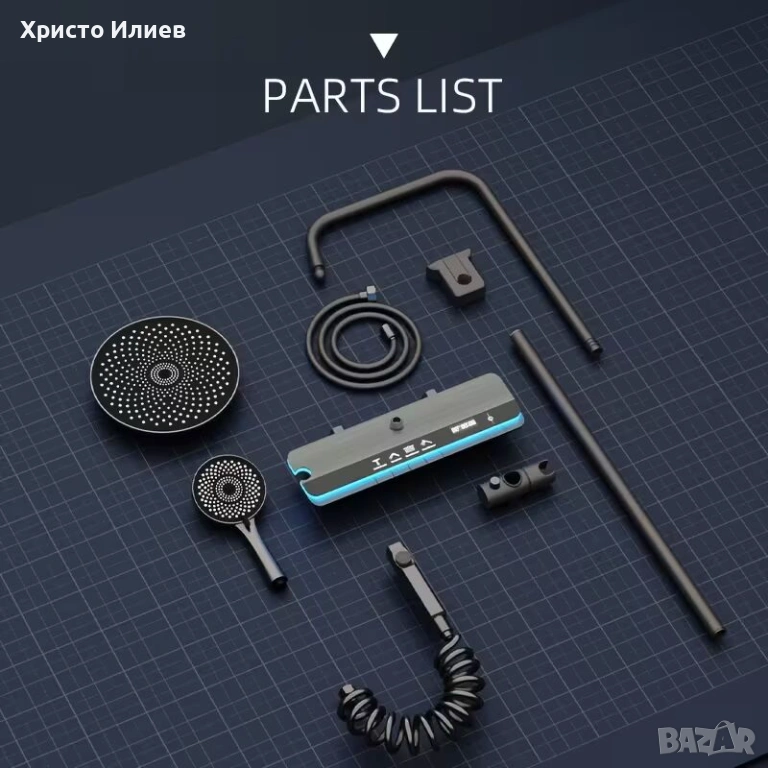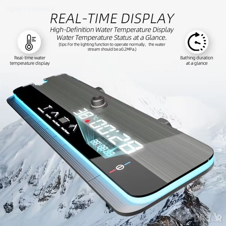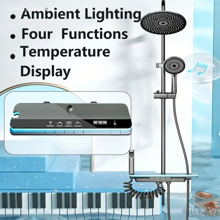 Модерен интелигентен термостатен 4в1 душ за баня с дисплей. Не се използва ток !!!Дисплеят работи благодарение на преминаващата вода , стандартни размери и свързване с ВИК.