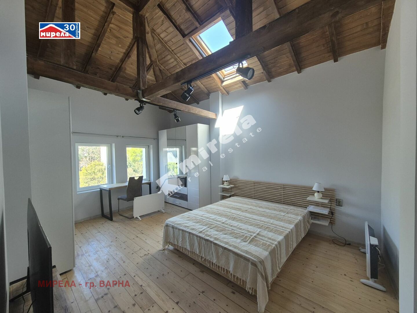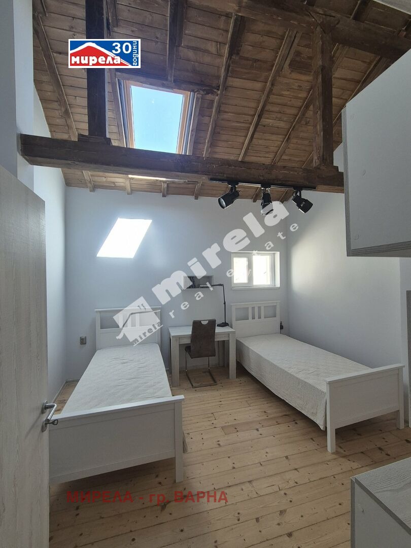 Състои се от антре, коридор, дневен тракт с кухненски бокс, три спални като едната в момента е с разтегателен ъглов диван. две бани с тоалетни и маза. Стаите са с Велукс прозорци на таваните за допълнителна светлина.
