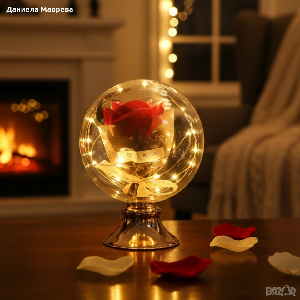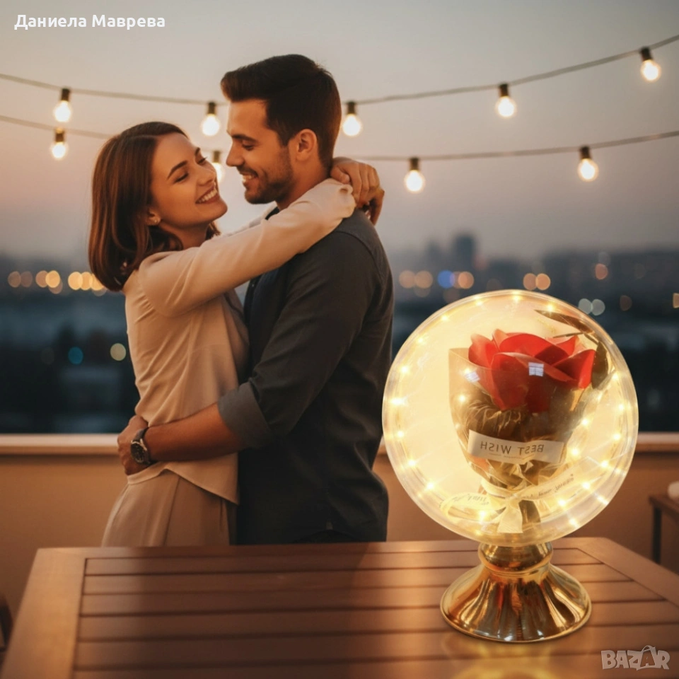 Лампа с роза и мека светлина – подарък, който остава и след празника → Обява 53350922