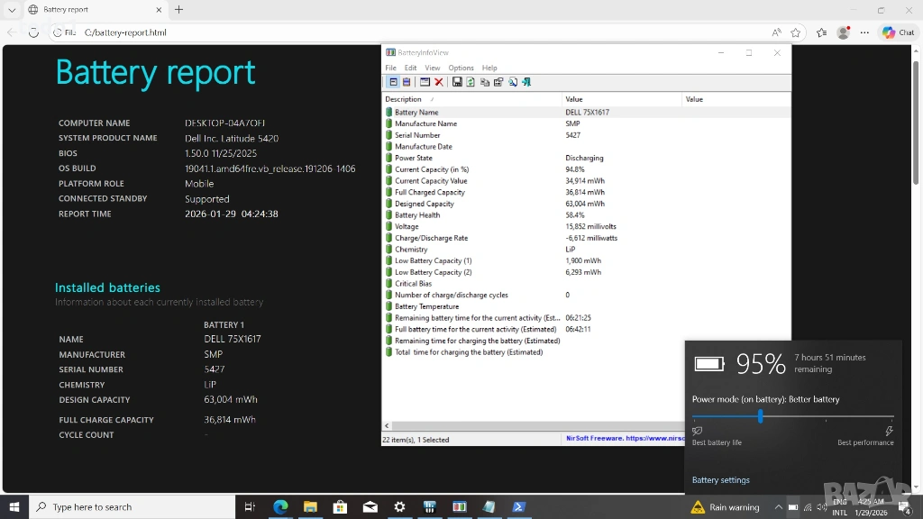 БАТЕРИЯ - 63 Whr Battery, най-голямата за модела, автономна работа 4-5 часа в зависимост от настройки и натоварване.