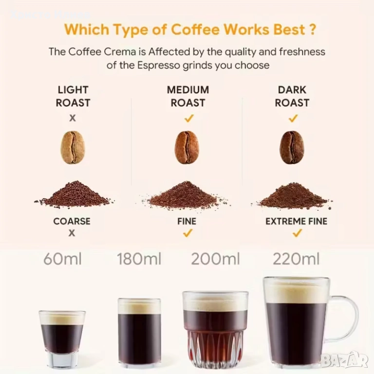 Пристига в комплект капсула , темпер, четка , мерителна лъжичка , 3 капачки
