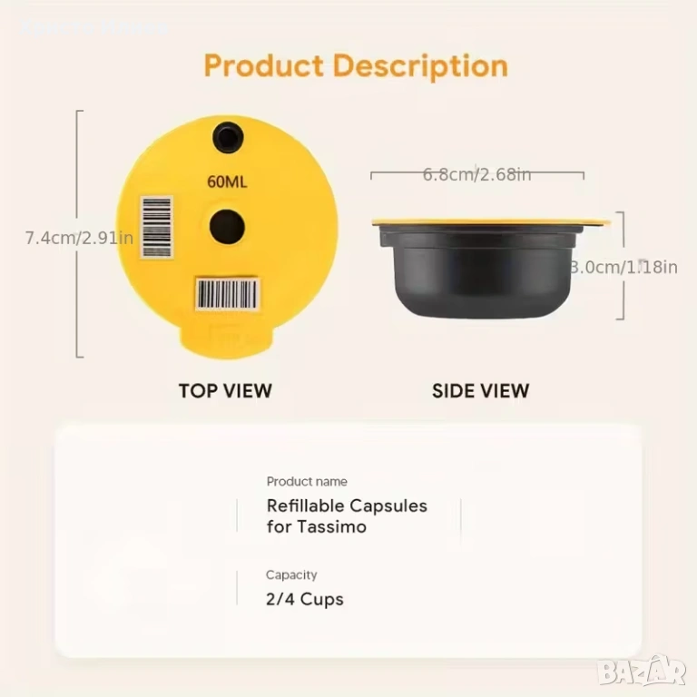 Многократна капсула за мляно кафе за Bosch Tassimo Постоянна капсула с темпер