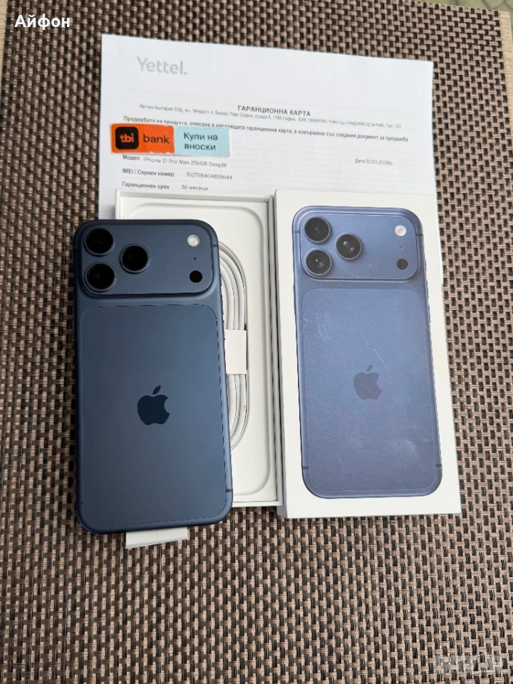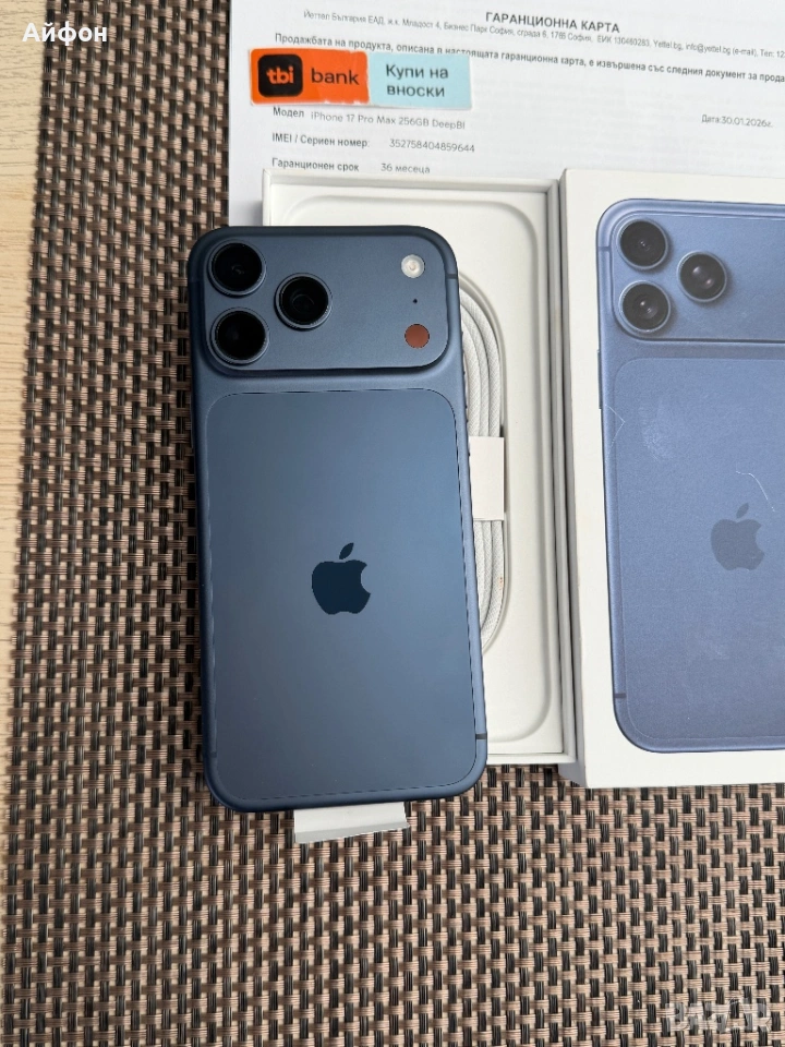 НОВ! 256Gb *ЛИЗИНГ* iPhone 17 Pro Max Deep Blue / 36М ГАРАНЦИЯ, снимка 1 - Apple iPhone - 53351301 НОВ! 256Gb *ЛИЗИНГ* iPhone 17 Pro Max Deep Blue / 36М ГАРАНЦИЯ, снимка 2 - Apple iPhone - 53351301 НОВ! 256Gb *ЛИЗИНГ* iPhone 17 Pro Max Deep Blue / 36М ГАРАНЦИЯ, снимка 3 - Apple iPhone - 53351301 НОВ! 256Gb *ЛИЗИНГ* iPhone 17 Pro Max Deep Blue / 36М ГАРАНЦИЯ, снимка 4 - Apple iPhone - 53351301 НОВ! 256Gb *ЛИЗИНГ* iPhone 17 Pro Max Deep Blue / 36М ГАРАНЦИЯ, снимка 5 - Apple iPhone - 53351301 НОВ! 256Gb *ЛИЗИНГ* iPhone 17 Pro Max Deep Blue / 36М ГАРАНЦИЯ, снимка 6 - Apple iPhone - 53351301 НОВ! 256Gb *ЛИЗИНГ* iPhone 17 Pro Max Deep Blue / 36М ГАРАНЦИЯ, снимка 7 - Apple iPhone - 53351301 НОВ! 256Gb *ЛИЗИНГ* iPhone 17 Pro Max Deep Blue / 36М ГАРАНЦИЯ, снимка 8 - Apple iPhone - 53351301 НОВ! 256Gb *ЛИЗИНГ* iPhone 17 Pro Max Deep Blue / 36М ГАРАНЦИЯ, снимка 9 - Apple iPhone - 53351301 НОВ! 256Gb *ЛИЗИНГ* iPhone 17 Pro Max Deep Blue / 36М ГАРАНЦИЯ, снимка 10 - Apple iPhone - 53351301 1/10