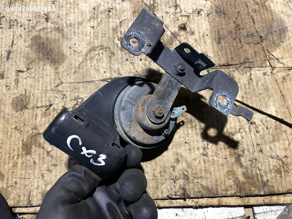 Продавам Употребяван Оригинал Тромба Клаксон KUG-70A Mazda CX3 2015г 1.5дизел 77kW 4х4 105кс код S5 83000км. Здрав и Работещ. Снимките са част от описанието.