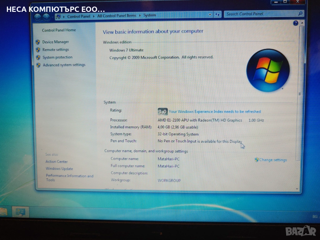 Операционна система: Windows 7 Ultimate (32-bit) – инсталиран и активиран