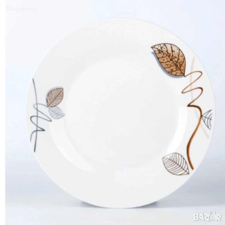Стил и изтънченост за всяка трапеза - Комплект чинии 24 части с елегантен листен дизайн → Обява 53351545
