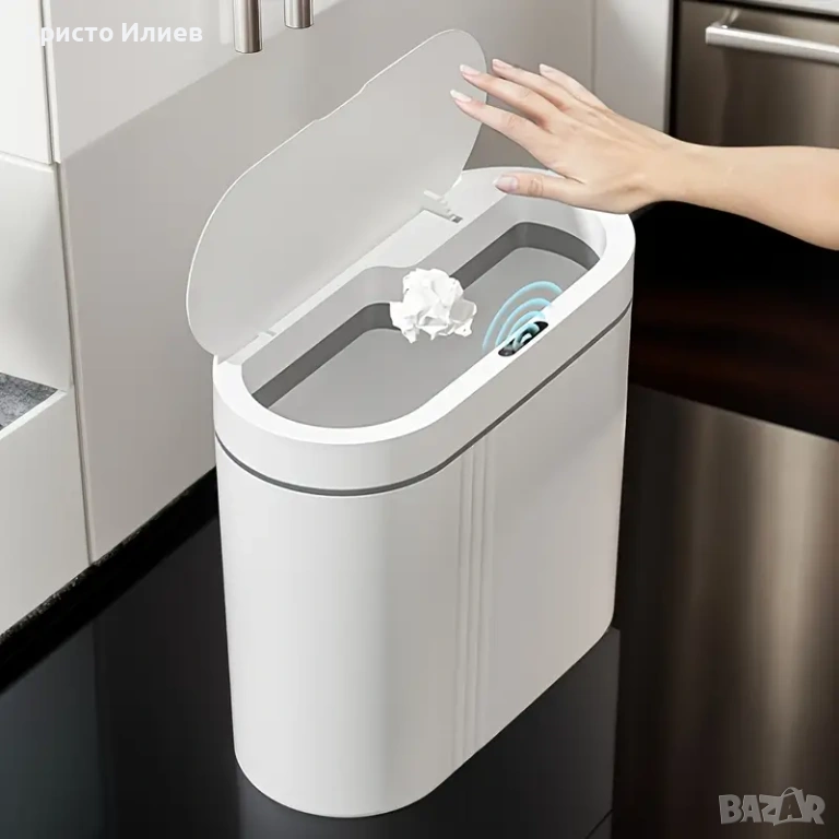Без докосване - Оборудван със сензор за движение, капакът се отваря автоматично, когато махнете с ръка над него.