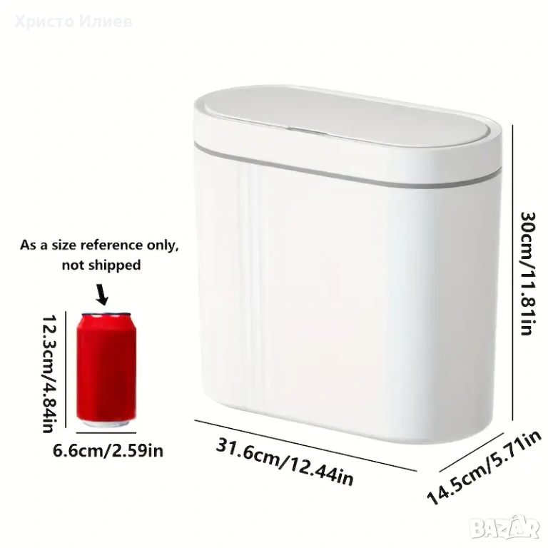 Захранва се на батерии (с изключение на батериите), издържа дълго време. Интелигентен сензорен капак за бърза и точна реакция, няма нужда да се навеждате.