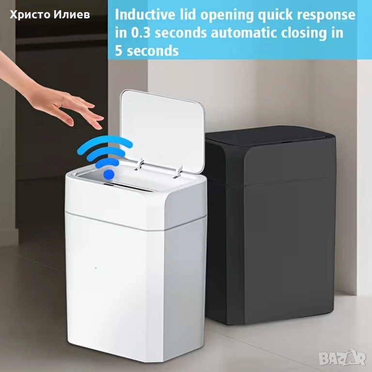 Без докосване - Оборудван със сензор за движение, капакът се отваря автоматично, когато махнете с ръка над него.