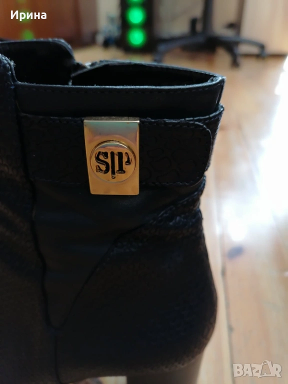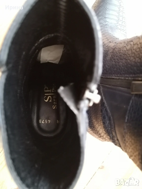 Тъмносини боти от естествена кожа Sara Pen, номер 37, (стават и за 36), за слабо краче, обувани веднъж, в перфектно състояние. С кутия, цена 60 €.