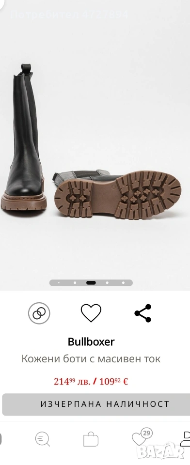 На тези уникални боти от "Bullboxer"няма да им дойде време за износване,имам много обувки и ги продавам.Купени са за 214 лв, слагала съм ги 2-3 пъти з по час/два,като нови са.Номер 37,дължина на стелката 23 см.Стелката също е кожа, вади се и са много практични за почистване и поддръжка.Цветс на подметката е ктуалния в момента студено кафяв.Изработката им е супер качествена ,на живо са много красиви.Цената не подлежи на коментар.