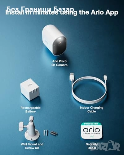 Нова Arlo Pro 6 Безжична охранителна камера 2K HDR Цветно нощно за дом