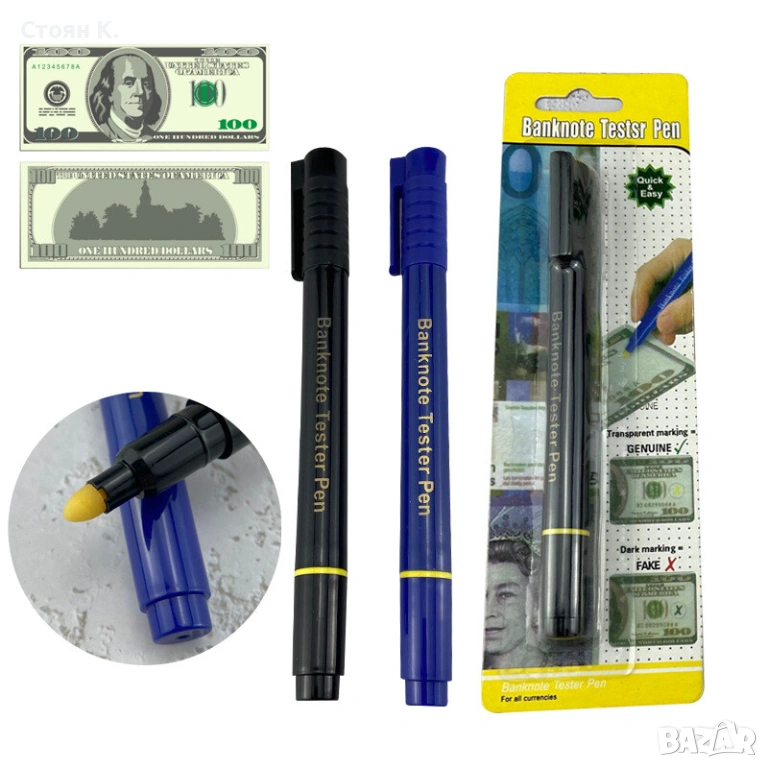 С този маркер ще можете да проверите всяка една банкнота, която е направена в Европа. Лесен и удобен за употреба, маркерът ще ви позволи да извършите проверка, за стотна от секундата, на всяко място и по всяко време. Използването на маркера е много лесно. Единственото, което е необходимо да направите, е да драснете една черта. Специалното мастило ще ви помогне да разберете дали евробанкнотата е истинска за секунда. Ако чертата стане много бледо жълта (и постепенно избледнява с времето и става незабележима) означава, че хартията на банкнотата е истинска. Ако стане тъмна и наситена на цвят, означава че банкнотата е фалшива.