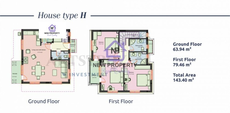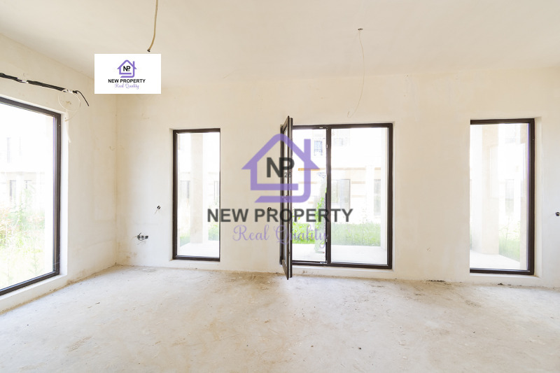 Първи етаж: антре, стълби, отвеждащи към втория етаж, обширна всекидневна с кухненски бокс, баня с тоалетна, мокро помещение, веранда с изглед към двора.