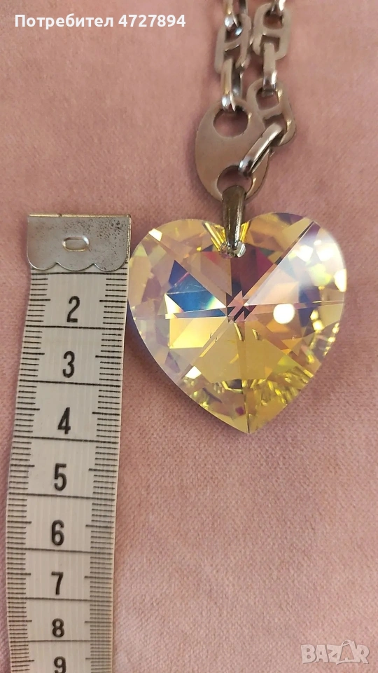 Сърцето е най-атрактивните,което можете да си представите.Купено е от магазин Сваровски в София със верижка.Кристала е безупречен, верижката може да се махне по желание.Много,много красиво.
