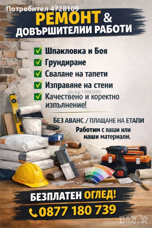 Цената се уточнява след оглед, съобразена с обема работа и спецификата на обекта.