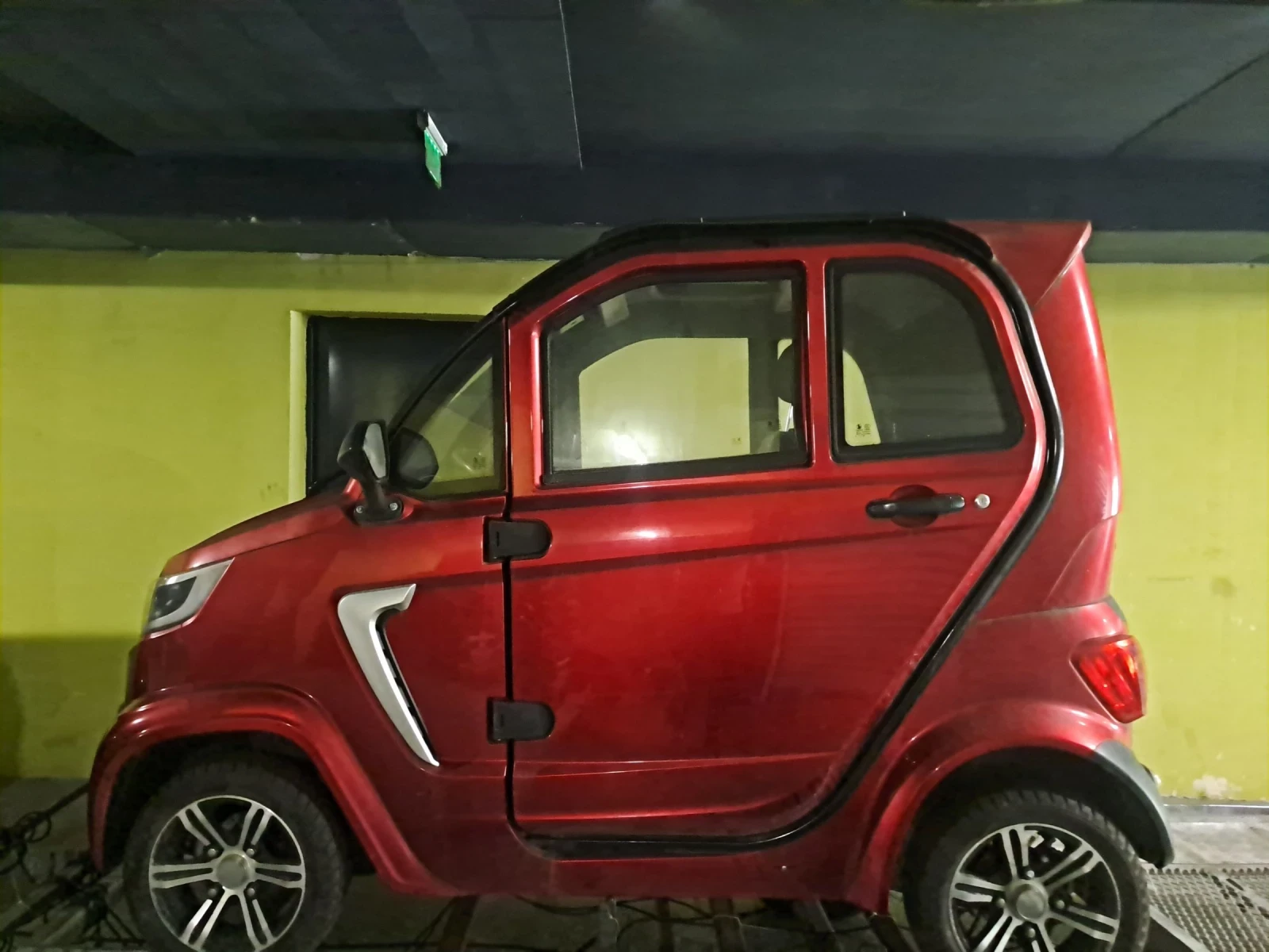 eLazzy Premium 45 км/ч ОСНОВНИ ХАРАКТЕРИСТИКИ: Перфектен при всякакви метеорологични условия до 45 км/ч Екологично пътуване с до 3 души 2000-ватов DC двигател Управление чрез волан Вентилация с функция за отопление Оборудван с предни и задни предпазни колани Зарежда се от всеки стандартен домашен контакт Доставката включва инструктаж на място Включва 2 години безплатно вземане от автомобила Прозрачен кокпит с цифров скоростомер, индикатор за нивото на зареждане, индикатор за фаровете и вградена камера за задно виждане Перфектната алтернатива на автомобила: 4-колесното електрическо превозно средство с кабина " eLazzy Premium" новото екологично превозно средство за до 2 души! С това електрическо превозно средство с кабина сте перфектно защитени от вятър и атмосферни условия. То е напълно затворено, екологично четириколесно превозно средство за до двама души и може лесно да се зарежда от всеки стандартен домашен контакт. Водачът има регулируема седалка. Пътникът намира удобно място на широка, интегрирана задна седалка, която е идеална и за съхранение на багаж или пазаруване. И двете седалки, разбира се, са оборудвани с предпазни колани. Безчетковият електродвигател с мощност 2000 вата позволява на електрическото превозно средство да достигне скорост до 45 км/ч. То може да изкачва наклони до 20%. Оловно-гел батерията с капацитет 3480 вата позволява пробег до 60 км*. Електрическо превозно средство с кабина и най-добрите характеристики: Мотор/Задвижване: DC мотор с директно задвижване на задния мост (неизискващ поддръжка) Управление на мотора: Интегрирано в шасито Мощност на мотора: 2000 вата Батерия: Оловно-гелова (неизискваща поддръжка) Напрежение: 60V/65Ah (5 x 12V/65Ah) Капацитет на батерията: 3480 Wh Тип монтаж: Батерия, постоянно монтирана под седалката - сменяема Време за зареждане на батерията: приблизително 6 до 8 часа DTE-LAZPr45-EW ECABINO eLazzy Premium 45 км/ч Максимален пробег* (нашият еко стандарт) до: 60 км Максимална скорост (в зависимост от метеорологичните условия, условията на терена, околната среда и теглото) до: 45 км/ч Макс. наклон приблизително: 15% Рама/Покритие: Стоманена рамка с водоустойчива кабина. Изработена от здрава пластмаса. Скоростна кутия: Автоматична безстепенно регулируема чрез педала на газта, със задна предавка. Спирачки: Хидравлични дискови спирачки отпред и отзад и допълнителна ръчна спирачка. Гуми: 12-инчови пневматични гуми с вентил 125/65-12, диаметър 49 см, безкамерни. Корименее: Волан. Контролно табло: Управление чрез волан и педали, превключвател на посоката, цифров скоростомер и индикатор за зареждане на батерията, индикатор за фаровете, светофар и клаксон, развлекателна система с USB порт, функция свободни ръце , MP3 плейър. Предно осветление: Дизайнерски фарове със законово задължителни дневни светлини и мигачи. Задно осветление: Дизайнерски заден фар с функция за стоп и мигачи. Седалка/пейка: Предни и задни седалки с текстилна кожена тапицерия и предпазен колан. Окачване: Опори на окачването отпред и отзад. Защита от пръски: отпред и отзад. Огледало: Огледало за обратно виждане отляво и отзад. дясно Размери: прибл. Д 230 x Ш 126 x В 165 см (включително огледало) Тегло на батерията прибл. : 70, 0 кг Тегло с батерията прибл. : 395, 0 кг Бруто тегло прибл. : 558, 0 кг Цвят: червен Включено в доставката: Превозно средство, батерия, зарядно устройство (кабел прибл. 130 см), ръководство за 