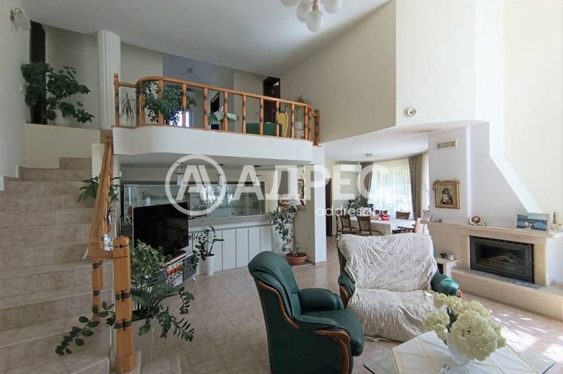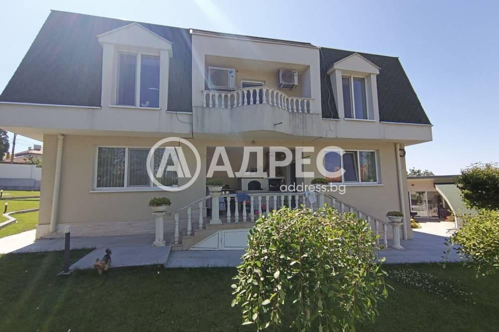Продава се голяма, съвременна къща! Къщата е на три нива и се състои от антре, голяма дневна с камина, кабинет, кухня с трапезария, килер, баня с тоалетна, мокро помещение, веранда с барбекю и пещ разположени на 172 кв.м. Второто ниво се състои от три спални, голяма баня с тоалетна, вътрешен балкон /емпоре/, килер и три тераси - 176 кв.м. Третото ниво е 50 кв.м. - фитнес зала с място за сауна. Дограмата е съвременна, сградата е с външна изолация. Изградено е подово отопление на ток, както и отопление чрез камина и въздухоотводи до всички помещения. къщата е климатизирана! Целият имот е ограден с плътна масивна ограда, поддържан и с изградена модерна поливна инсталация! Към къщата има и гараж с топла връзка към къщата!
