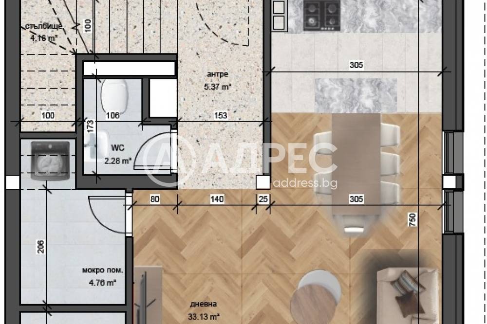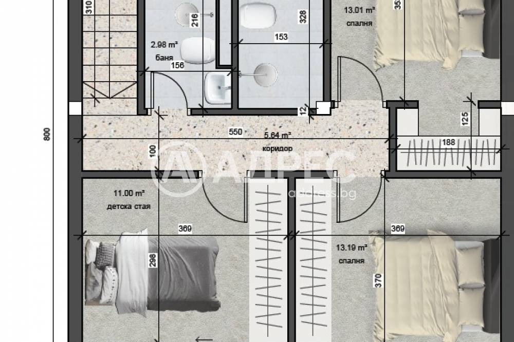 'Адрес' предлага къщи - ново строителство в близост до градския парк! В парцел от 1166 кв. м. ще бъдат разположени 8 броя индивидуални двуетажни къщи с прилежащо дворно място и паркомясто отпред! Всяка сграда на първия етаж разполага с общирна дневна с кухня и трапезария, с достъп до веранда и двор, склад, мокро помещение и тоалетна. Вторият етаж се състои от три спални, две бани с тоалетни и балкон. Осигурен е достъп и до плоския покрив. Двата етажа са свързани с широко вътрешно стълбище.