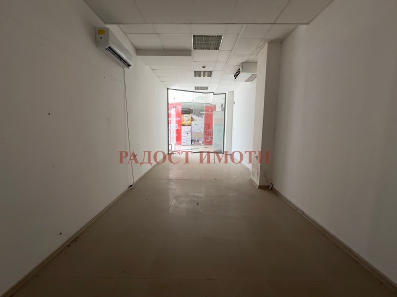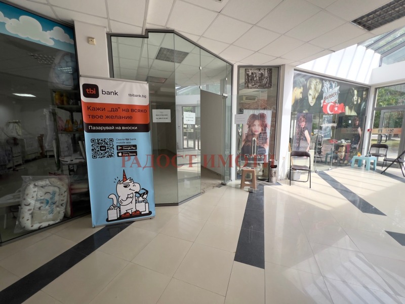 Помещението се намира на партерен етаж , във вътрешната част на търговския център, в съседство с други работещи обекти. Състои се от просторно помещение със стъклена витрина . Има общ санитарен възел в сградата.