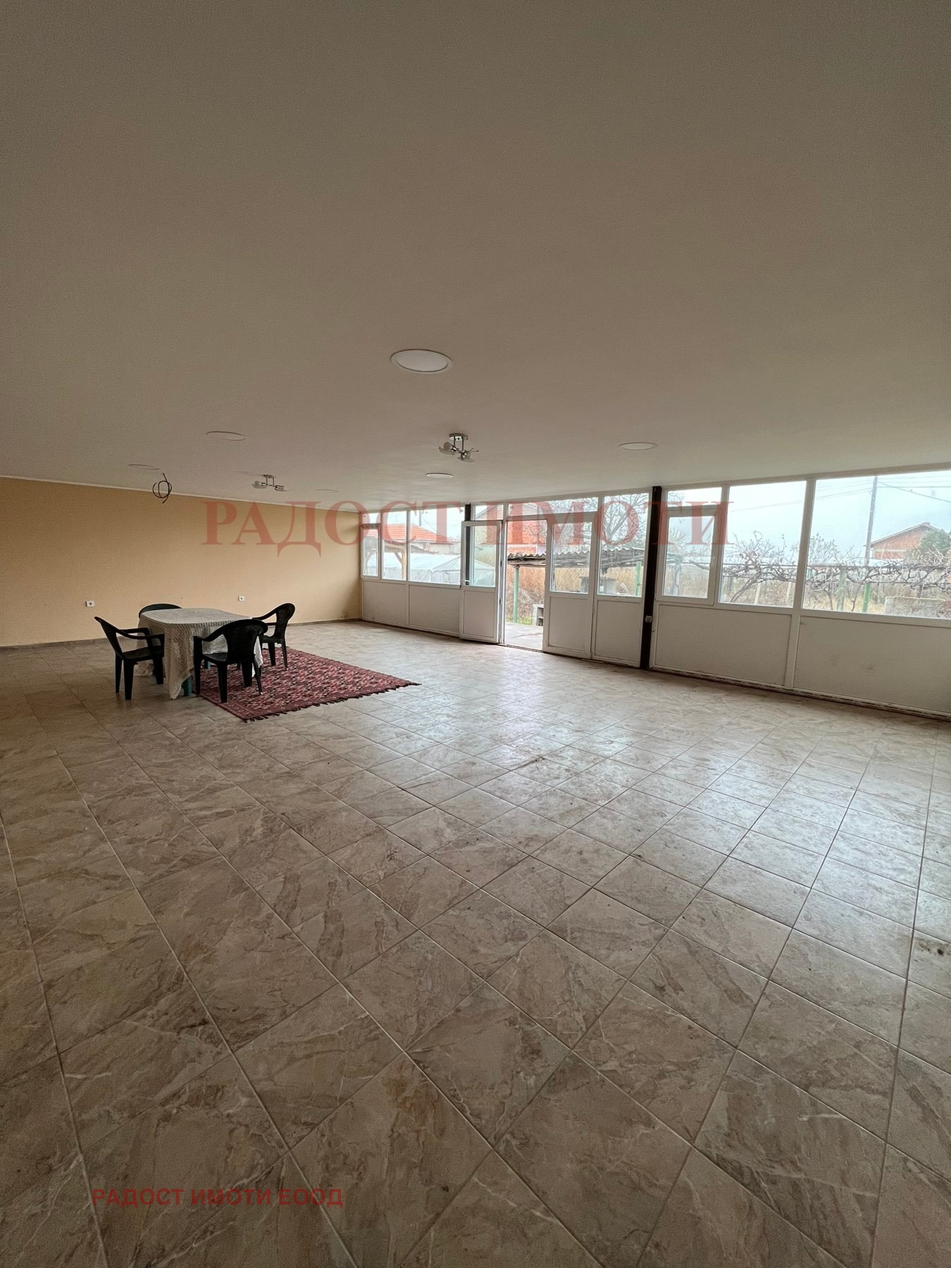 До къщата има огромно помещение от 70 кв.м. с изглед към двора. Има предвидено помещение за баня и тоалетна, което в момента се използва за килер.