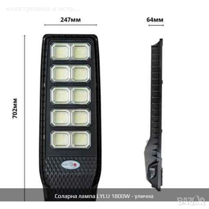 Осигурете надеждно и енергийно ефективно осветление на вашия двор, паркинг или друга открита площ с уличната соларна лампа LYLU с мощност 1800W. Оборудвана с мощни LED диоди и високоефективен поликристален соларен панел, тази лампа осигурява до 12 часа непрекъсната работа. С водоустойчивост IP67 и интелигентен контролер за оптимален добив на соларна енергия, LYLU е перфектното решение за осветяване на открити пространства при всякакви атмосферни условия.