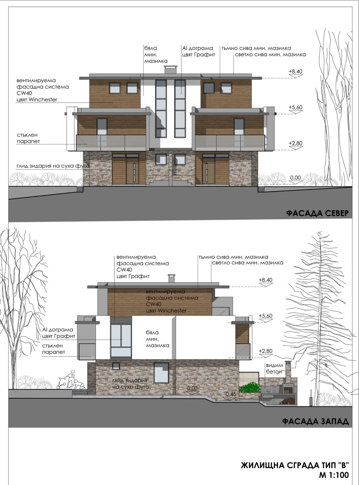 *Сграда тип В също се състои от два самостоятелни жилищни обема с обща стена, всеки по 3 етажа;