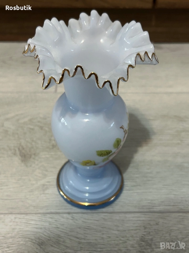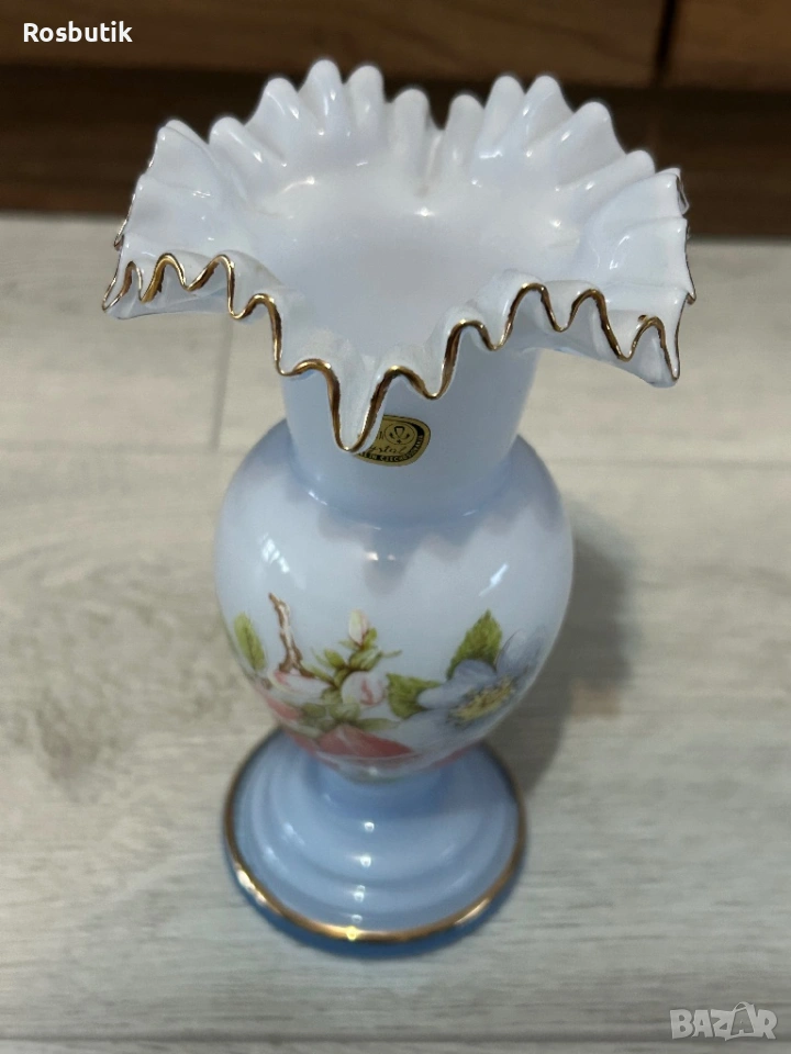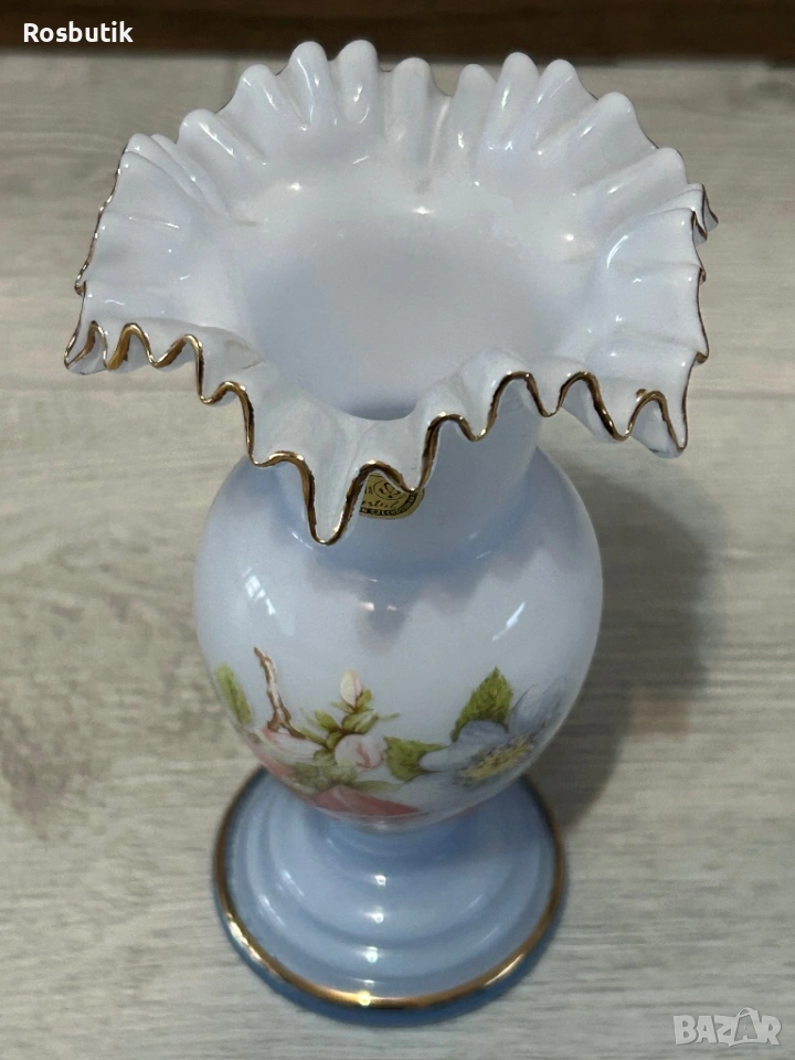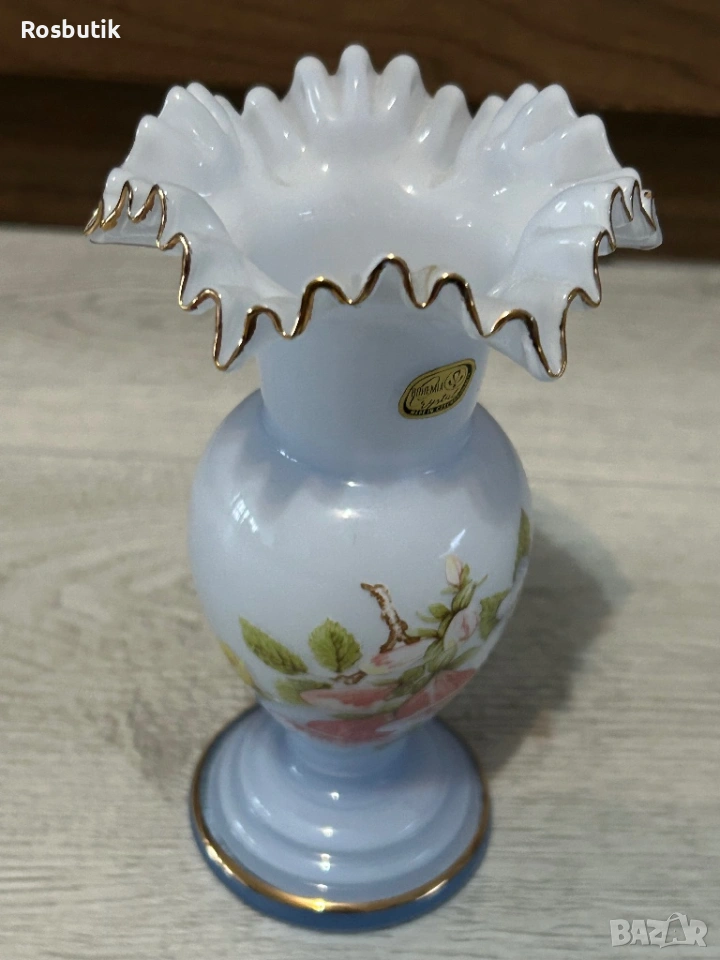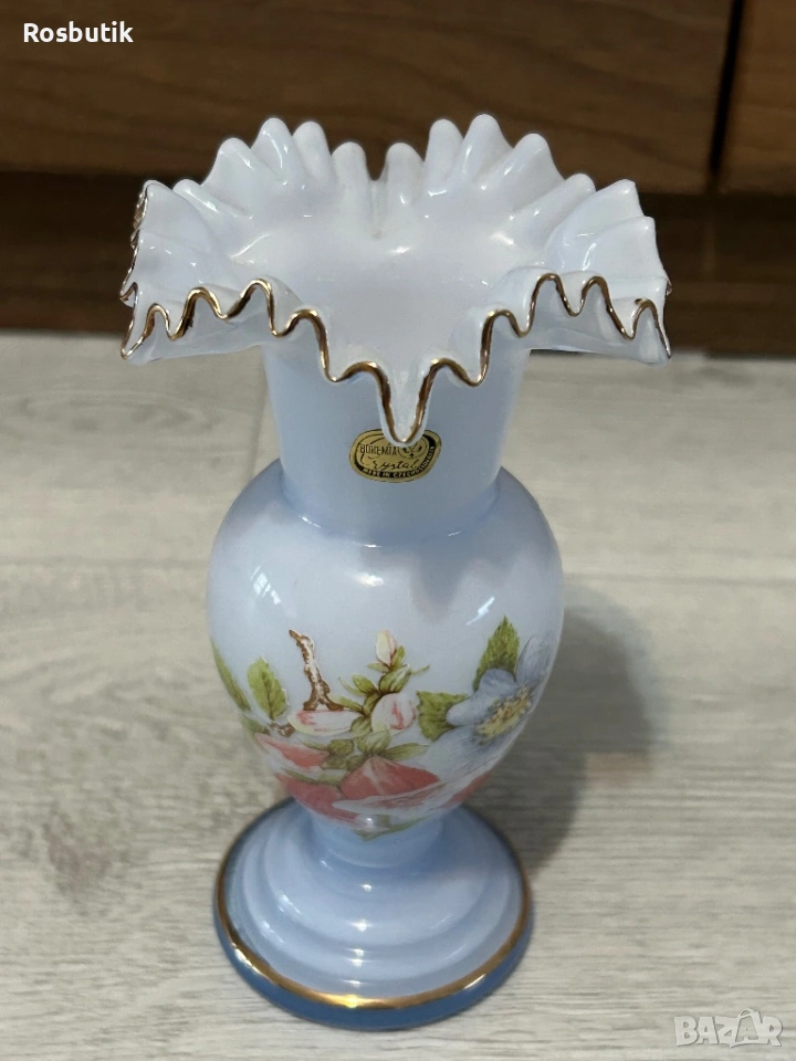 Нежна красива старинна кристална ваза произход Бохемия Чехословакия размер 14см/9см.
