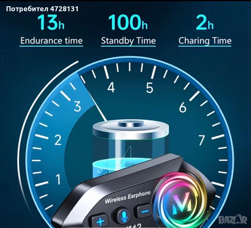 Нов Интерком-перфектен звук.13 часа издържа батерията с едно зареждането,до 300 метра обхват.Мек микрофон.