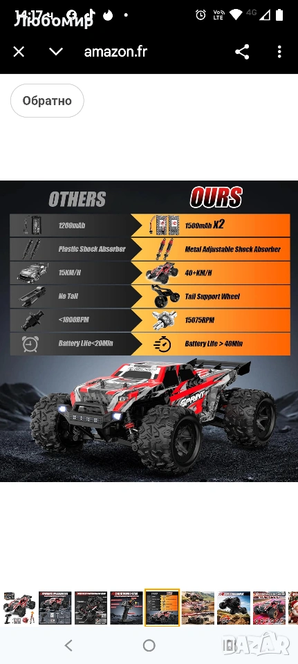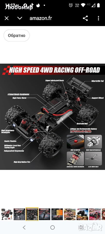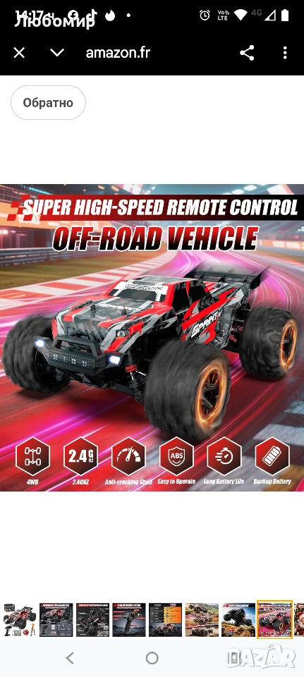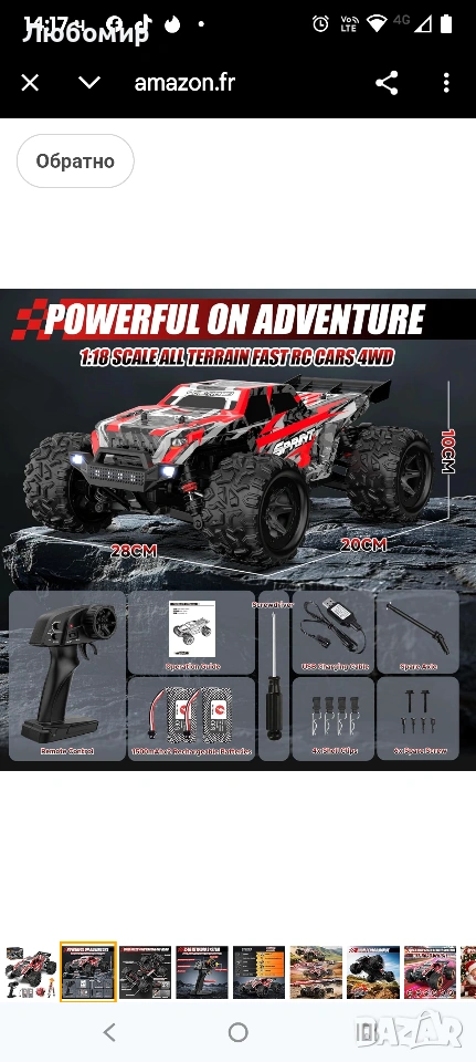 Кола с дистанционно управление 40 км/ч, мащаб 1:18 за офроуд с радиоуправляеми двигатели