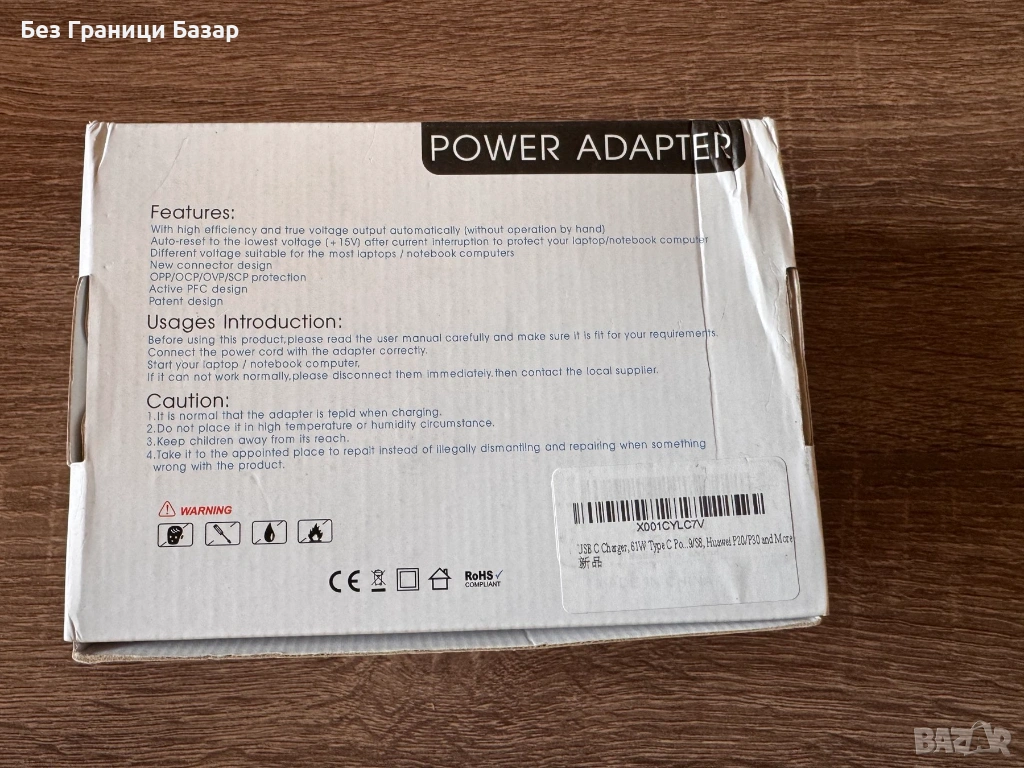 Нов Универсален USB-C захранващ адаптер 61w (Replacement AC Power Adapter) UK контакт