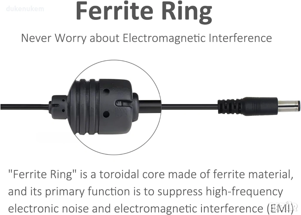 Оборудван е с магнитен феритен пръстен, който намалява електромагнитните смущения и предпазва свързаните устройства от високочестотен шум.