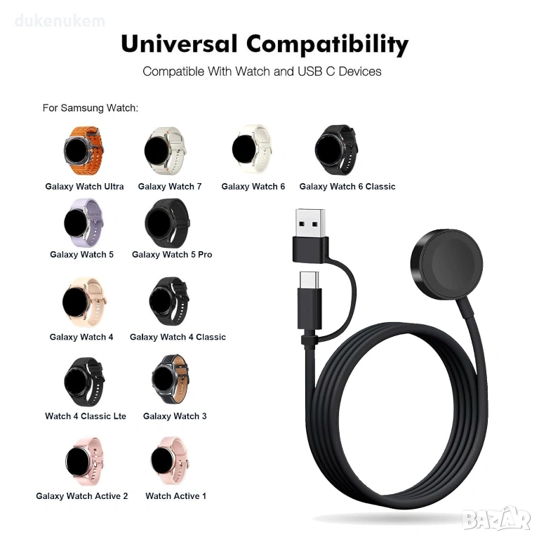 Бързозареждащ кабел за Samsung Galaxy Watch – безжично зареждане, 100 см
