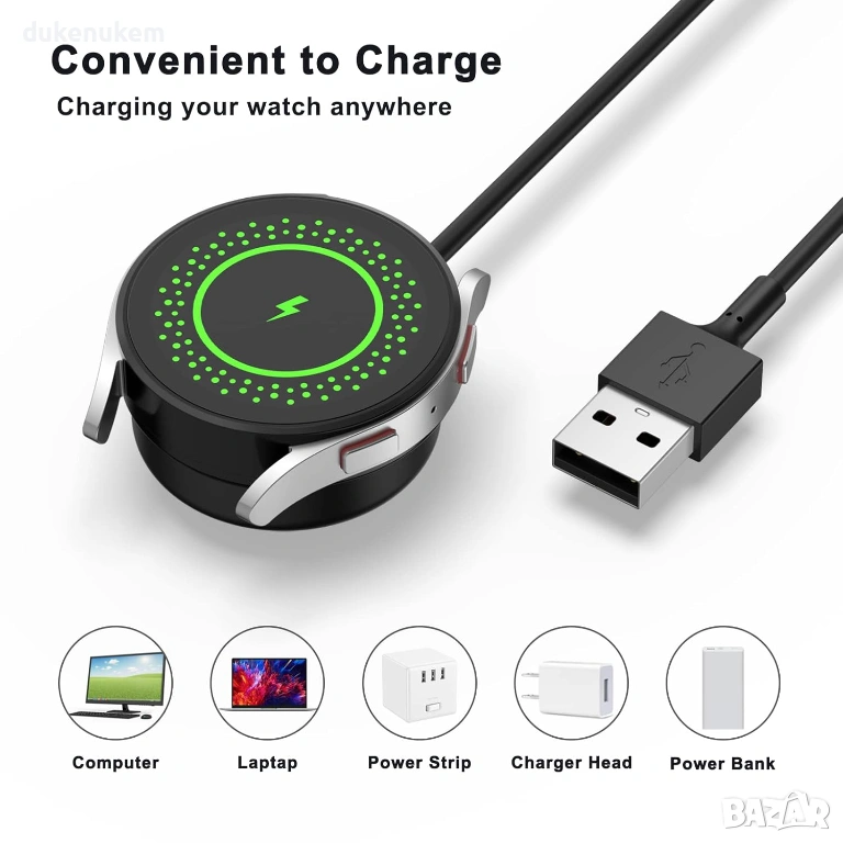 Компактният и лек дизайн позволява удобно зареждане без сваляне на каишката. Кабелът е с дължина 1 метър, което го прави практичен за използване у дома, в офиса, в автомобила или при пътуване. Подходящ за лаптопи, настолни компютри, USB зарядни и power bank устройства.