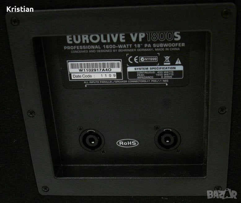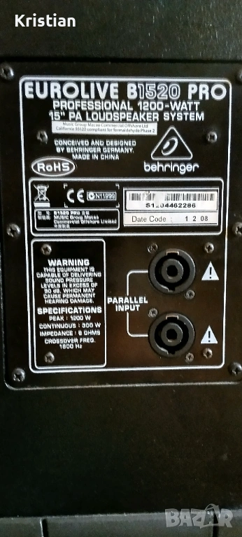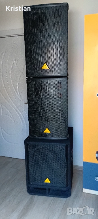 Behringer.Комплакта се състои от 2х15 инча двулентови колони Behringer B1520 1200w пик и 350w RMS ,1х18 инча субуфер Evrolive VP1800S 1600W пик и 400w RMS, и крайно стъпало/усилвател/Behringer EP2500.Апаратурата е в перфектно състояние,пълна техническа изправност и отличен външен вид.Ползвана е само за професионални цели.Никога не е излагана на влага,дъжд или прекалено слънце.Пазена е много.Не пращам по куриери!Който има желание-идва,вижда,чува и ако хареса-взима и заминава.Подробна информация за мощност и др.се вижда на снимките.Давам и пълно описание на колоните и стъпалото:Колони: