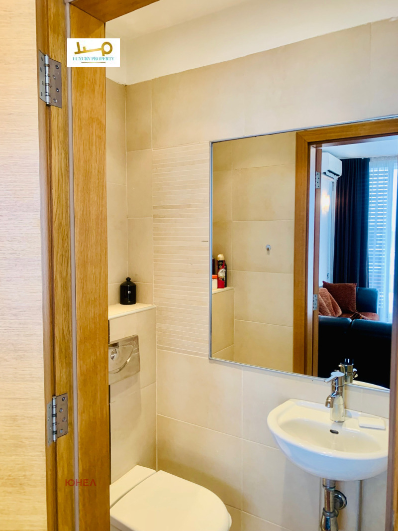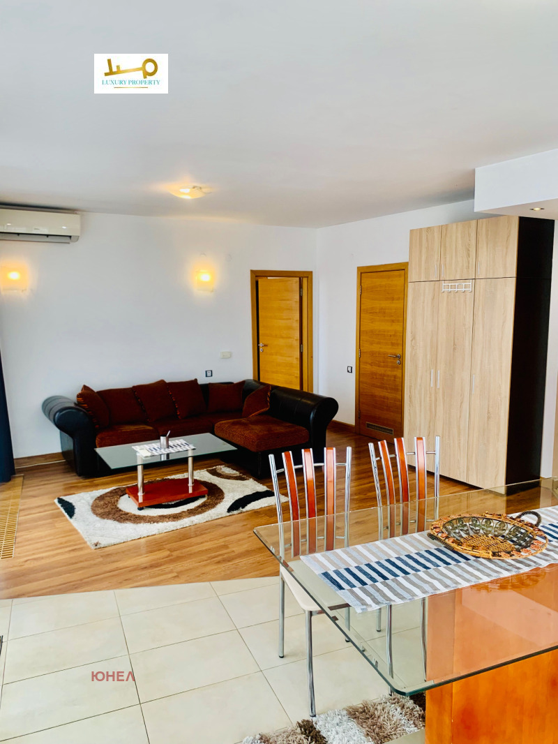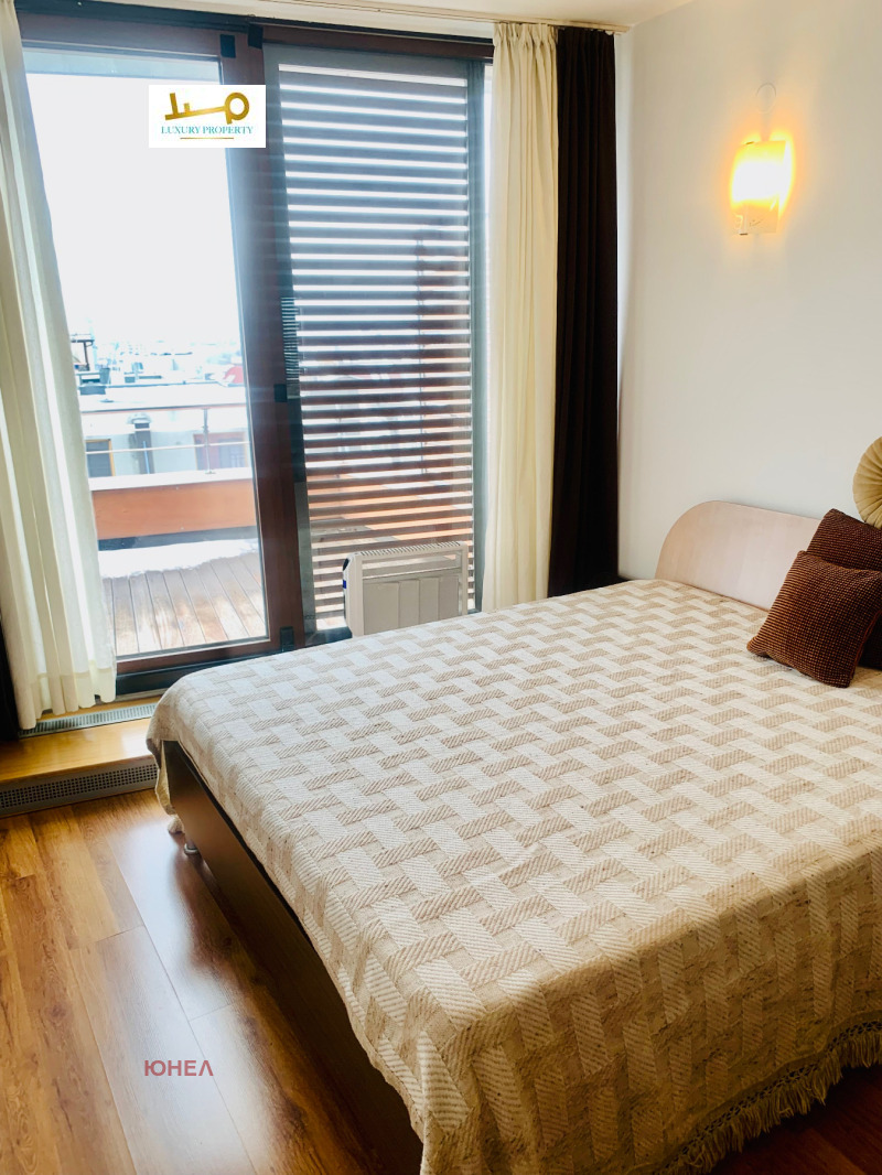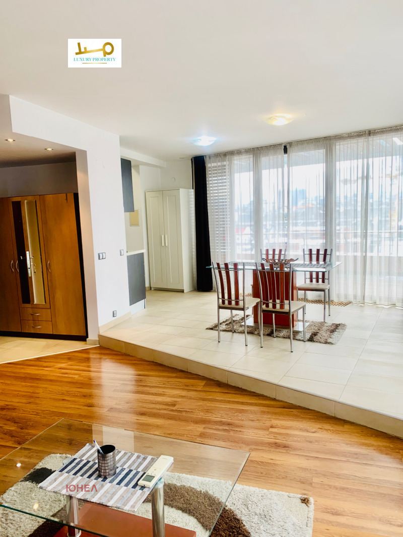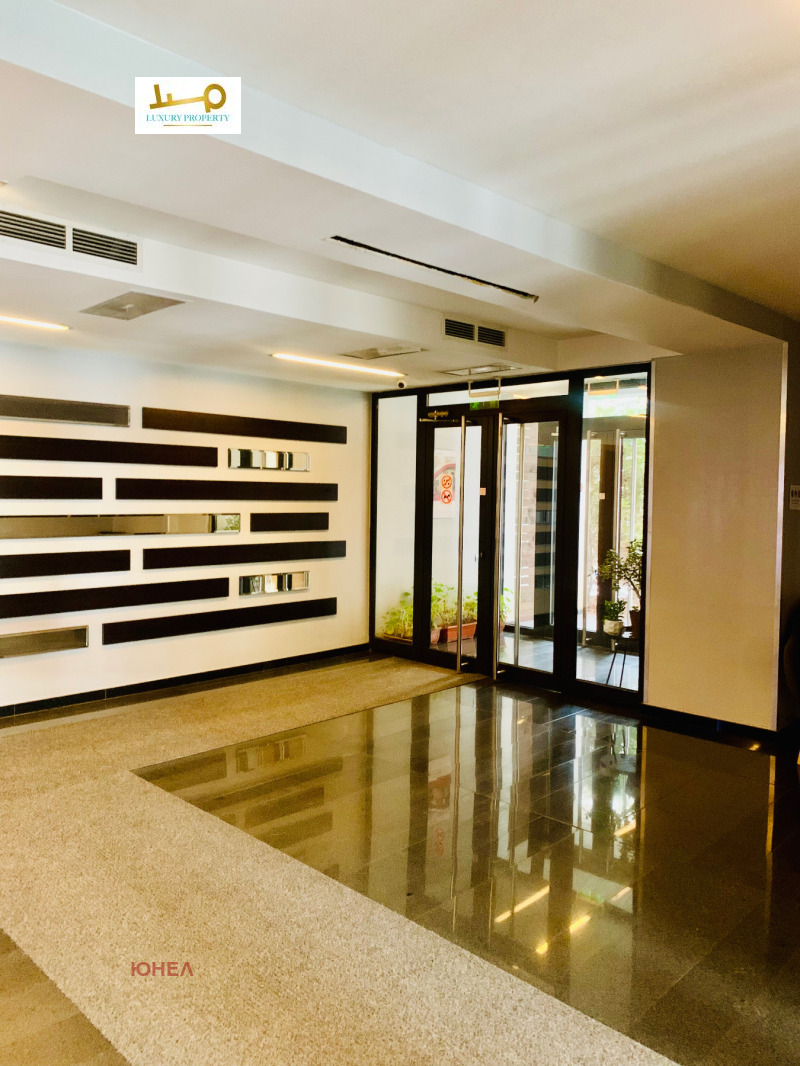 Агенция за недвижими имоти Luxury Property/ Unel има удоволствието да представи на Вашето внимание много слънчев и панорамен апартамент под наем в затворен комплекс с охрана, зелени площи,покрит басейн, фитнес център и СПА център. Комплексът разполага с вътрешен парк място за барбекю и парти-тържества, миниголф, лекарски кабинет, детска занималня и др. Жилището разполага с голяма тераса от 50 кв. м., с гледка към планина Витоша. Разпределение: всекидневна с трапезария и кухненски бокс, спалня с баня и тоалетна към нея, отделна тоалетна за гости, антре и голяма тераса на която се излиза от двете помещения. Предимства: дизайнерско обзавеждане, затворен комплекс и контрол на достъп, Спа център, фитнес център и басейн в близост до метростанция и до МОЛ Парадайс. Има възмижност за наемане на паркомясто в подземен гараж. За повече информация Антония Проданова - 0882 505158