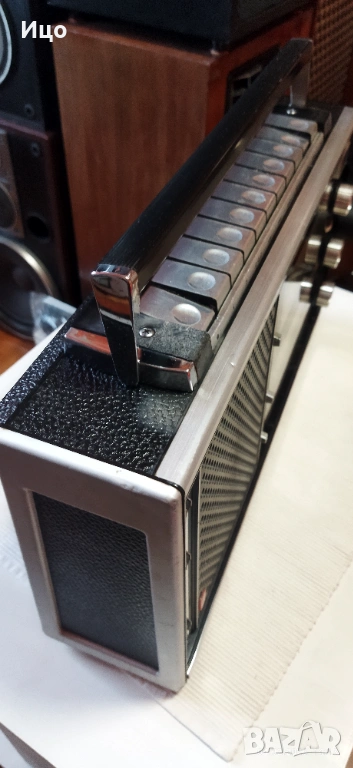 Преминало пълна профилактика,сменени кондензатори.Три забележки,липсва дясна декоративна лайсна, антената се изважда до половината,копче пускане стои включено.Леко петно на пластмасата до дръжката.Като цяло приятна визия и отлична работа.Лично!!!.По куриер с предплащане.
