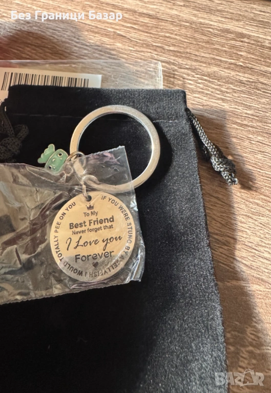 Подаръчен ключодържател с послание, подходящ за изразяване на обич и признателност към най-добрия приятел. Ключодържателят е с кръгла метална плочка, гравирана с надпис “To My Best Friend… I Love You Forever”, което го прави сантиментален и запомнящ се подарък.